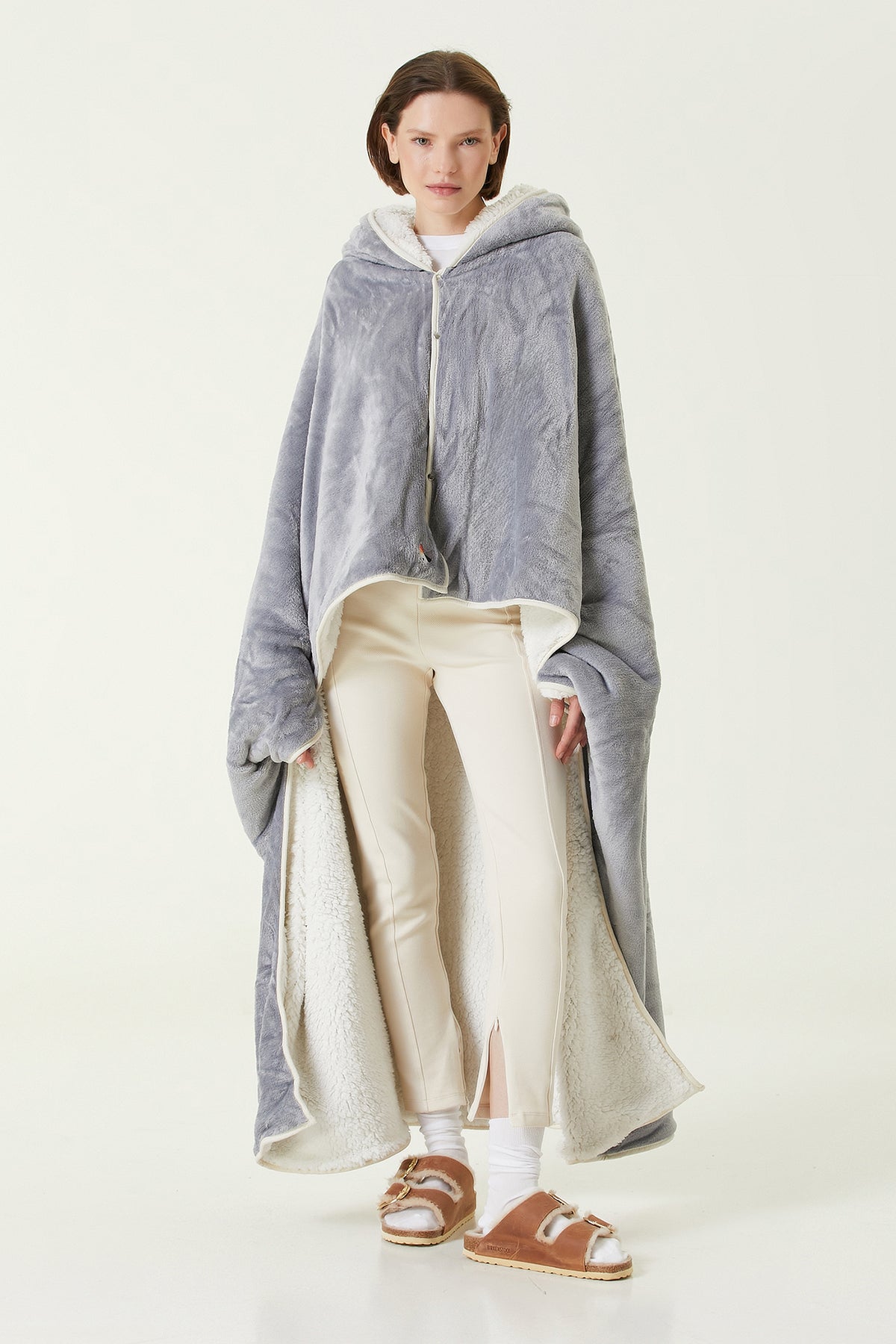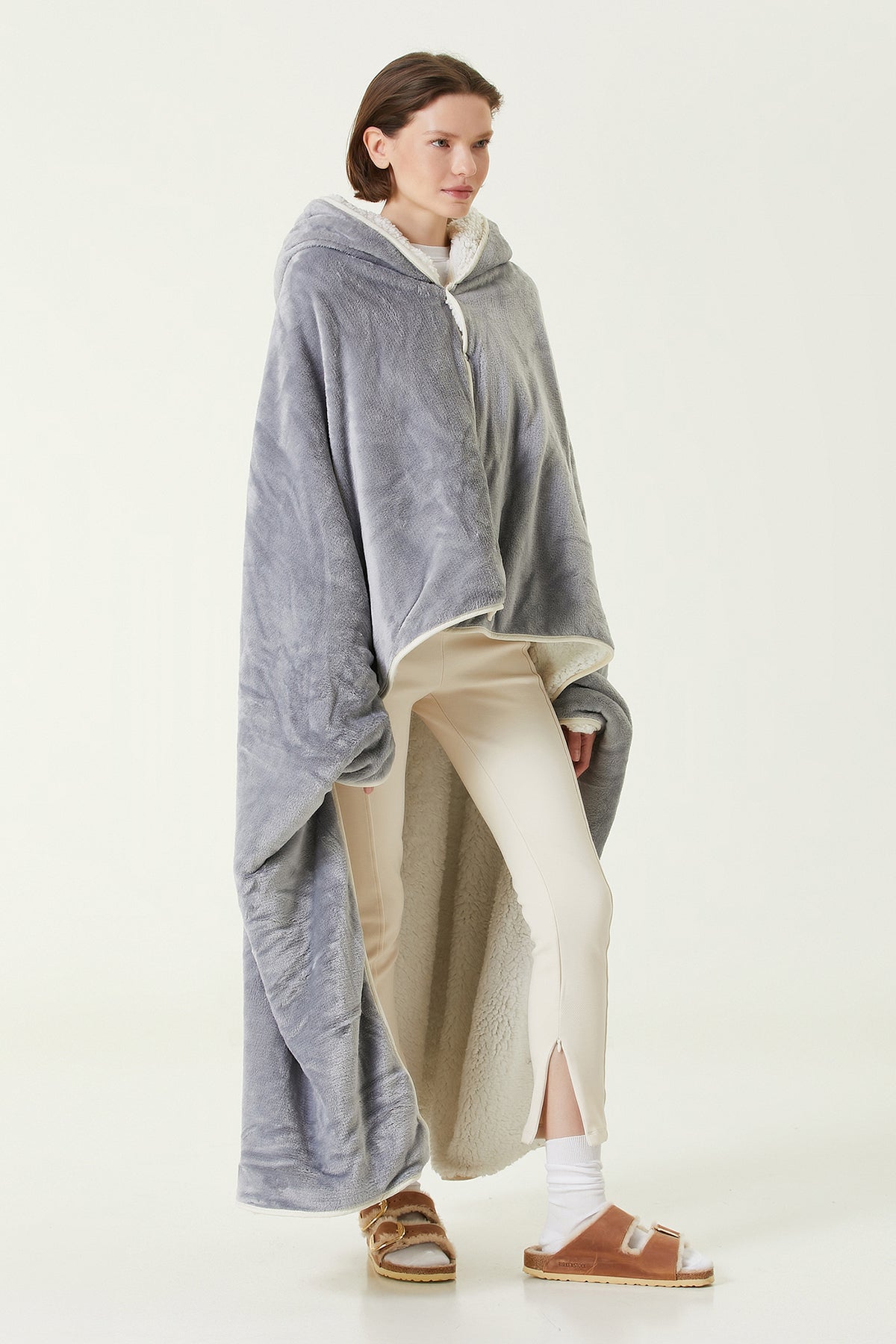 Es Parla Lona Giyilebilir Battaniye Oversize Gri