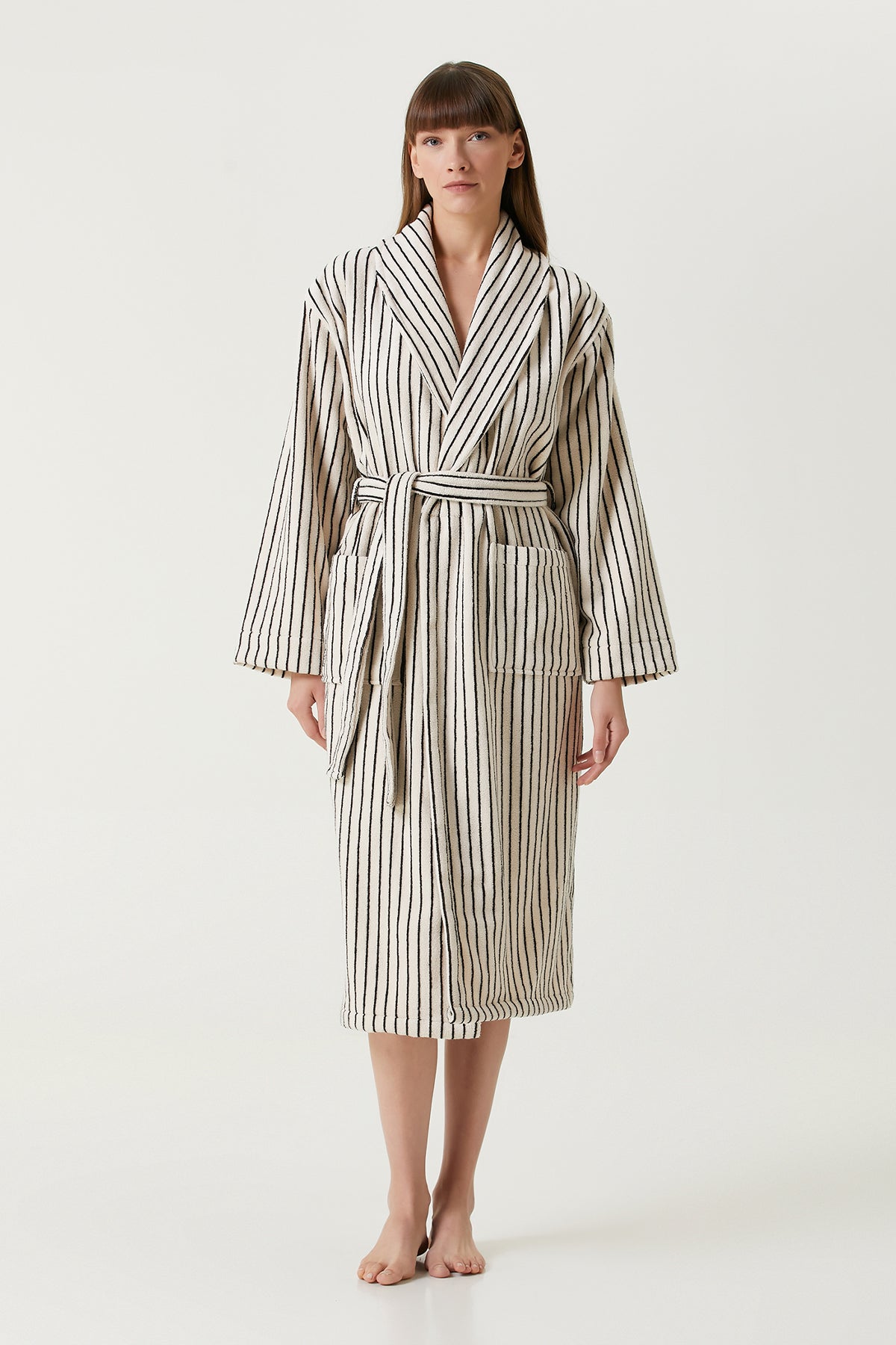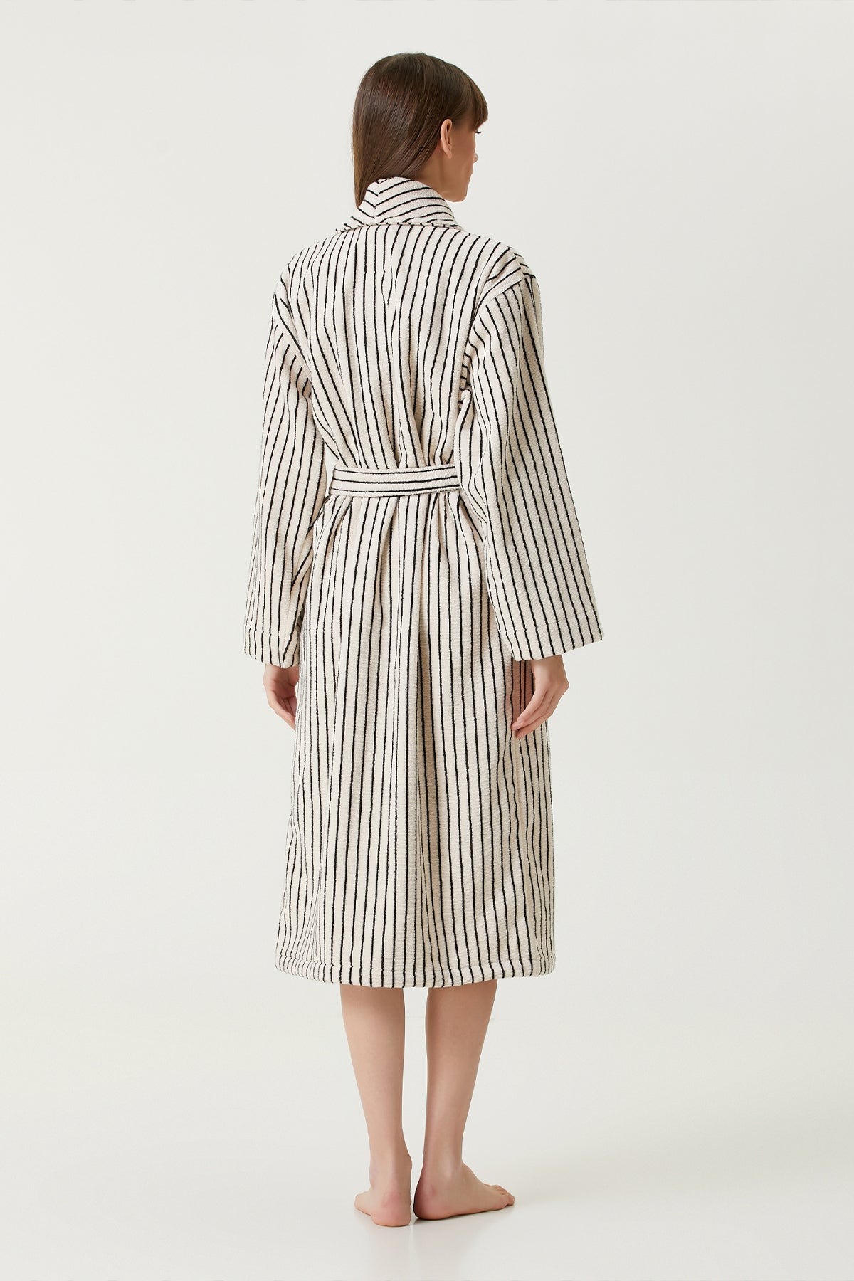 In Lines İpliği Boyalı Kadın Bornoz Ekru